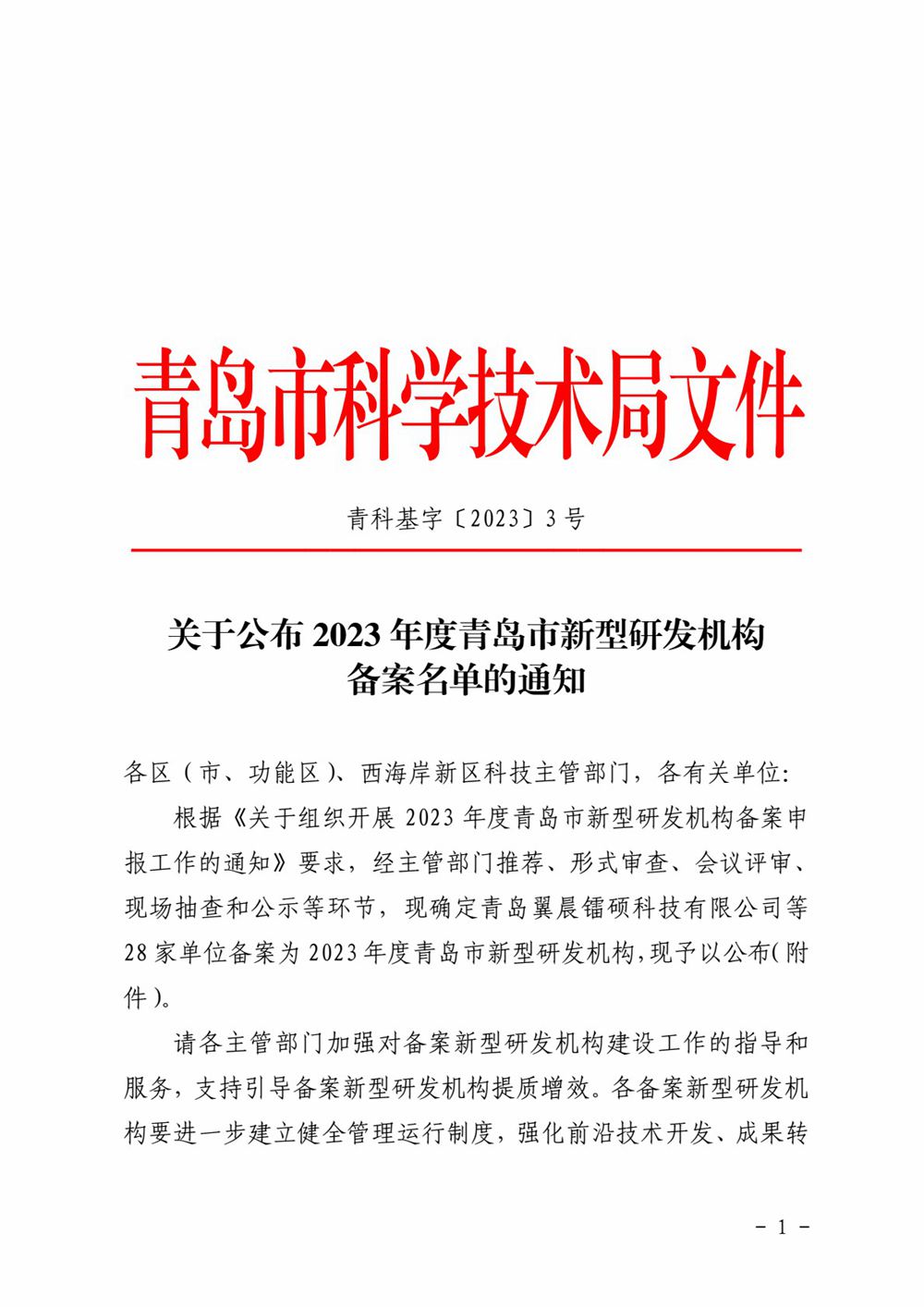 青岛市新型研发机构