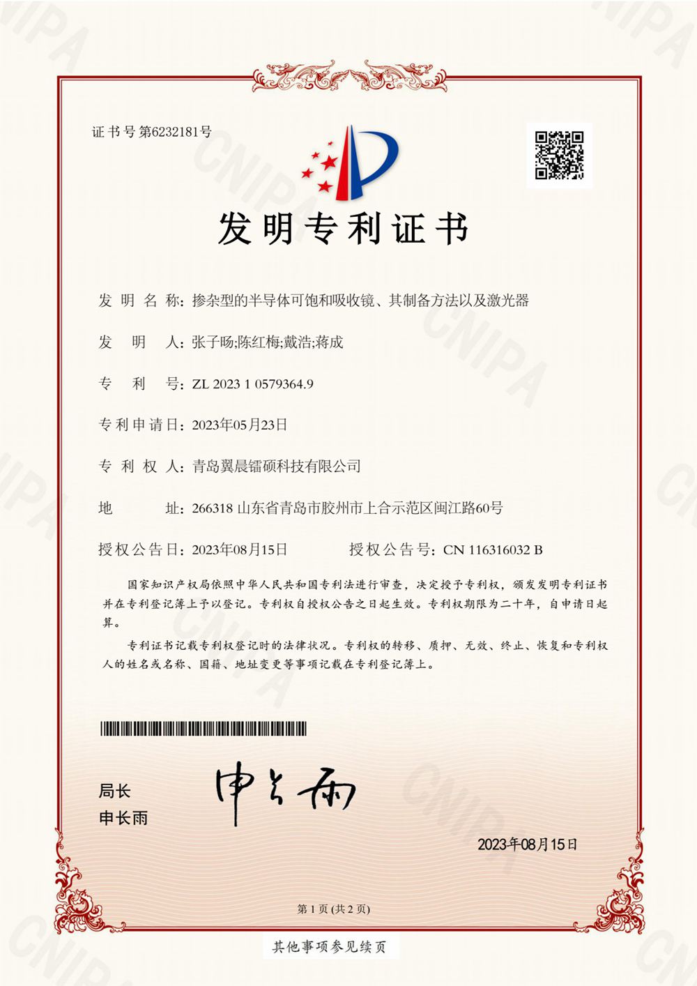 专利证书