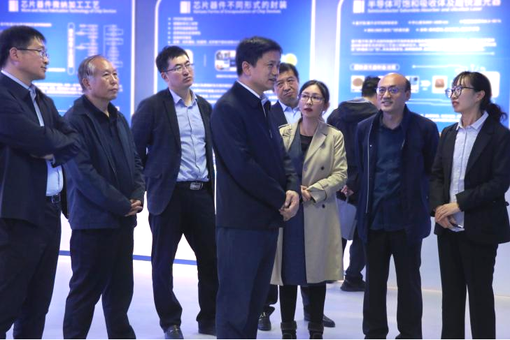 11月4日,胶州市委常委,组织部范奇志部长带领市委组织部,环保局、科工信局、城建局、胶州发展集团,在九龙况主任,王书记的陪同下,考察调研我司半导体项目进展情况。我司董事长张子旸先生为范部长等一行的到来表示热烈欢迎和由衷的感谢。